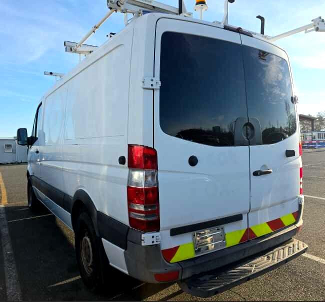 2012 Mercedes Benz Sprinter 2500 Low Roof Cargo Van with Ladder Rack and Rear Shelving kit, 3.0L Turbo Diesel, Power Equipment, Back up Camera, Fully Serviced and ready to go! Call Indy Trucks at 317-218-3613 to schedule a test drive. Arctic White exterior and Black interior.