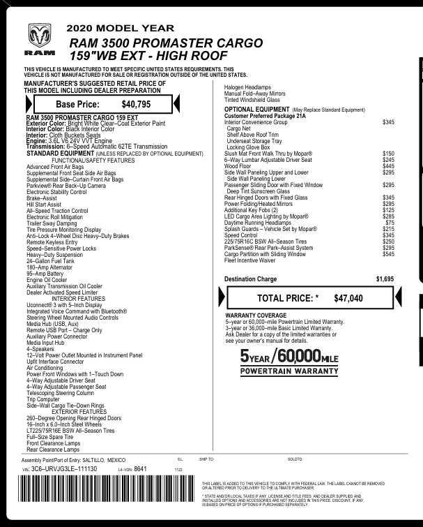 2020 RAM Promaster