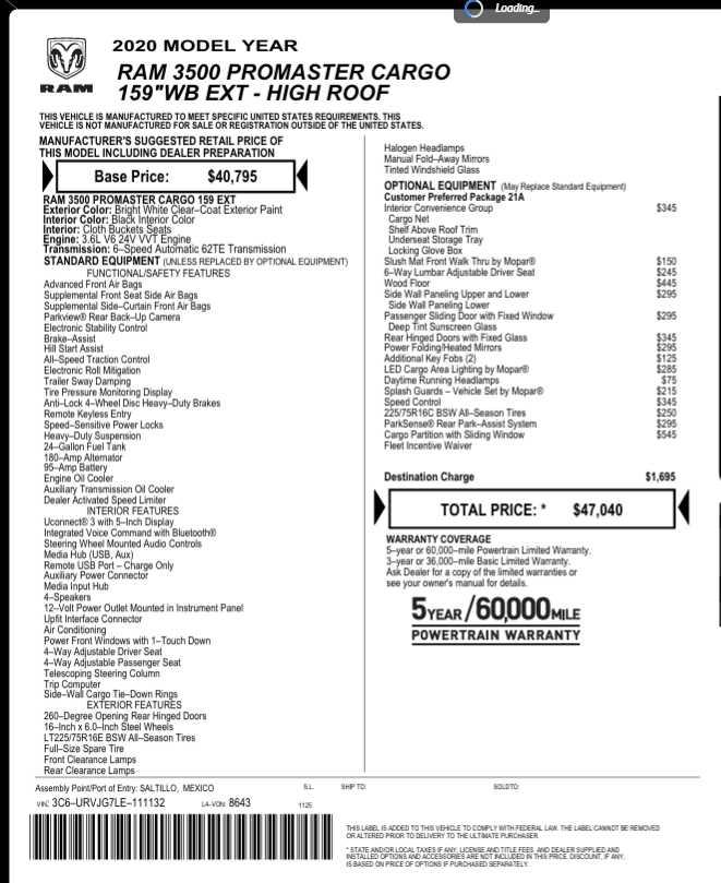 2020 RAM Promaster